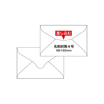 名刺封筒の一番コンパクトなタイプです。ベロの形に特徴があります。名刺や各種カード類を入れるのに使われます。