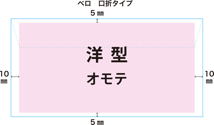 ベロを折った状態で、上(ベロ)下は5mm、左右は10mm、の余白が必要です。